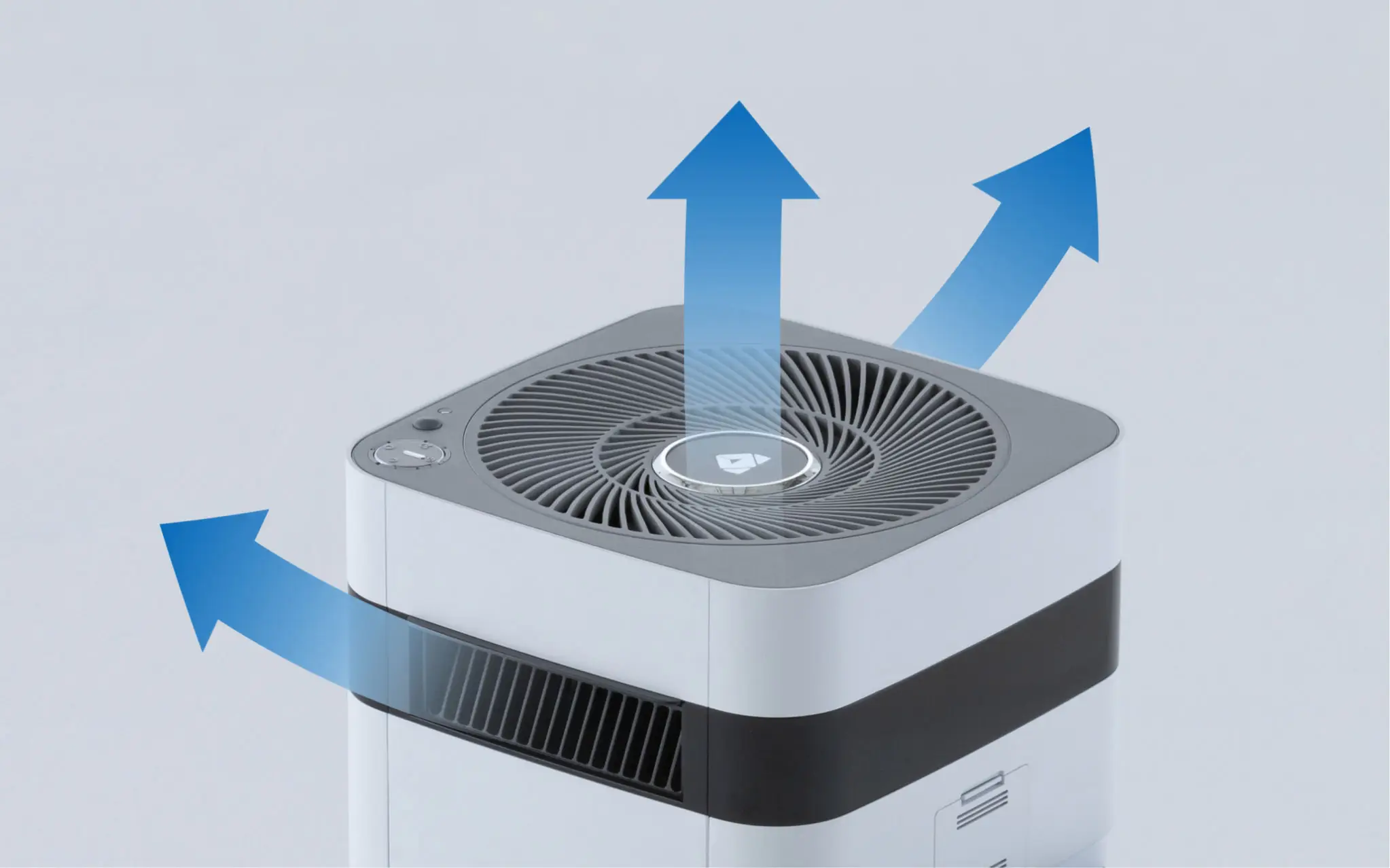 本体上部と左右2カ所、計3カ所からキレイな空気を排出します。