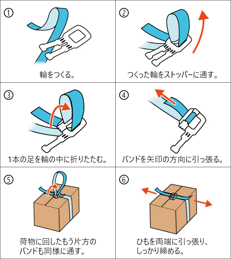 蓋を閉め、留め具を使ってPPバンドをかけてください。