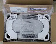 機種によっては箱が段ボールとプラスチック箱の2種類ありますが、梱包手順には違いがありませんので、同様の手順で梱包してください。