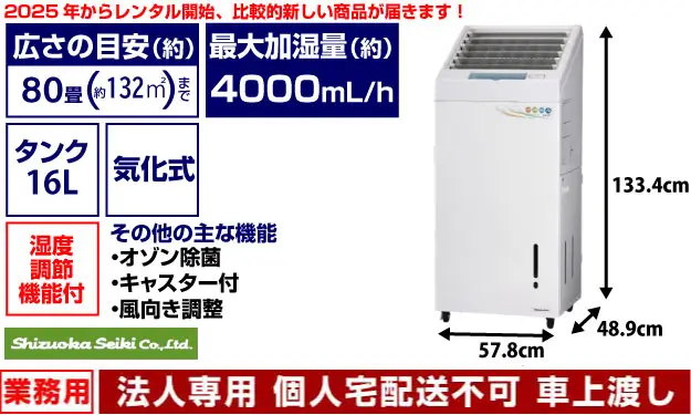 ※静岡製機の冷風機をそのまま加湿器としてレンタルしている業者もいらっしゃいますが、冷風機と加湿器は違います。冷風機を冬場に使用すると直接冷風が当たってしまうため、寒いのでご注意下さい。