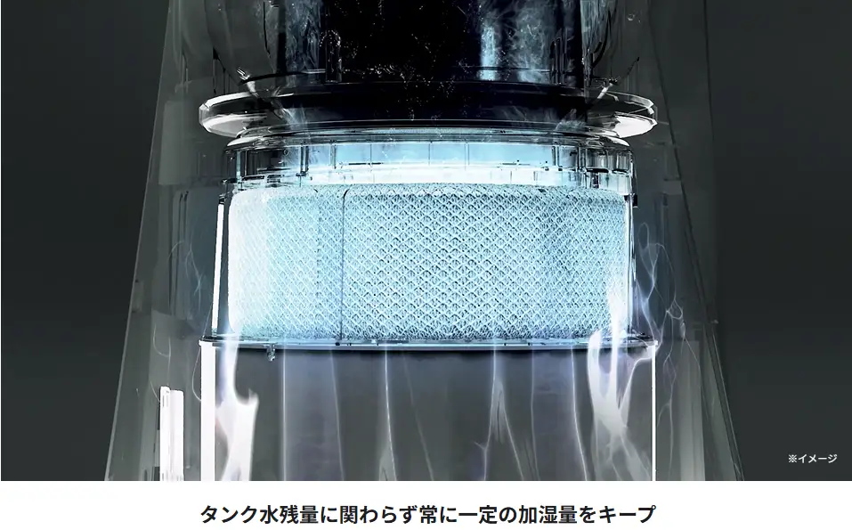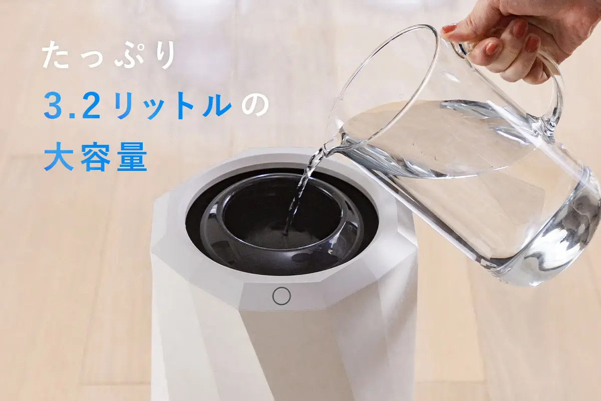 加湿方式が気化式のため粒子が細かく、床や家具を濡らしたり水滴がついたりする心配がないため、電気製品や書類の近くで使っても問題ありません。