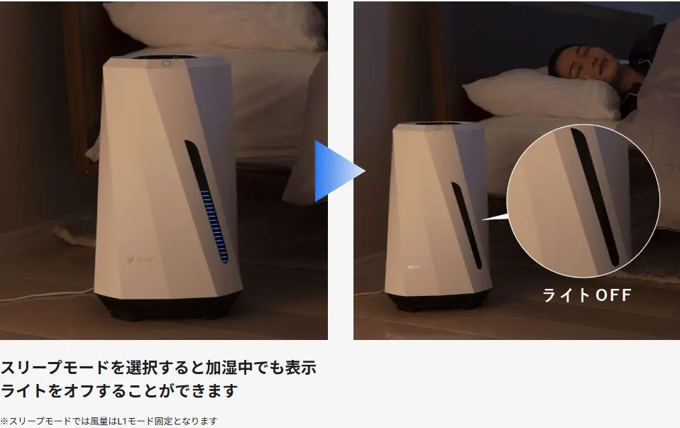 最長25時間連続加湿可能なため、睡眠時も保湿ケア可能です。